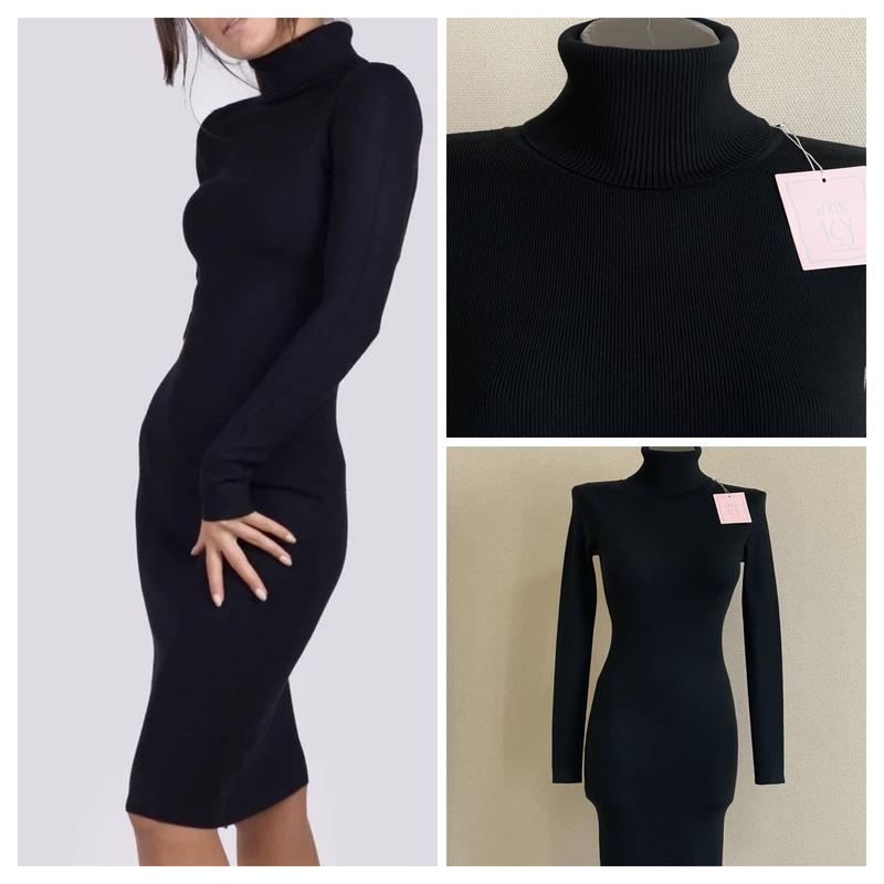 Облегающее,обаятельное качественное черное платье-гольф в микро рубчик,вискоза,шерсть Очаровывающая, базовая,эффектная,облегающая фигуру, модель платья идеальной длины по/за колено.Платье очень комфортное,стильное и практичное,с уютным воротником с отворотом под горло.Люкс качество! Ткань в микро рубчик,в составе которой вискоза и шерсть,мягкая,приятная к телу,высокой эластичности,хорошо тянется(эффект резинки) на нужные параметры и садится по фигуре полностью в обтяжку,Модель очень красивая,стильная и женственная! Размер:Tu,универсальный,идет на XXS/XS/S/M,натяжка ткани до 10-12см Замеры в спокойном состоянии(без натяжки) и до скольки см ткань тянется: длина -106см плечи-30-40см рукав-60см ПОГ подмышки-37см,тянется до 48см ПОТ-30см,тянется до 40см ПОБ-33см,тянется до 47см Состав:80%вискоза,10%шерсть,10%,эластан Фото на манекене 90-62-90 Возможен наложенный платеж,доставка НП,предоплата 150 грн