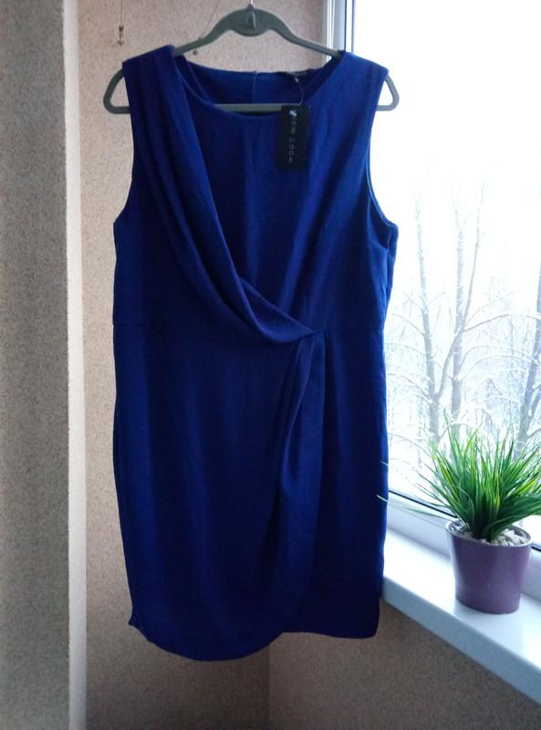 Красивое нарядное платье миди прямого силуэта с драпировкой по переду. На подкладке. По спинке на молнии Указан размер 18, но, думаю, отлично подойдет и на размер 16. С бумажной биркой. Полуобхват груди - 52-54 см, Полуобхват талии - 47-48 см, Полуобхват бедер - 56-57 см, Ширина по плечам - 40 см, Ширина плеча - 8 см, Длина от горловины до линии талии - 42 см, Длина платья - 90 см)