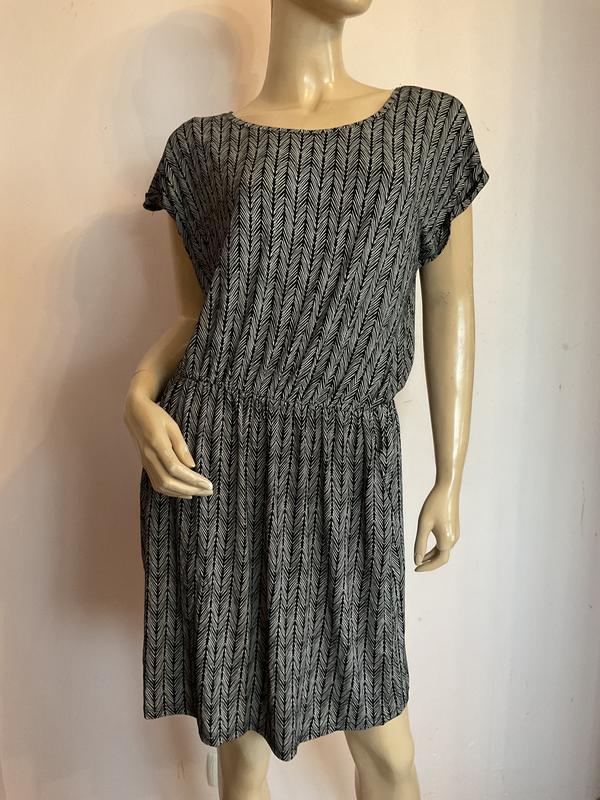 Симпатичное платье на каждый день. С напуском в талии резинка. Без подкладки, ткань тянется, средняя. Замеры в груди 64см в талии 35-45см длина от горловины до линии талии 48см вся 90см 20:1:25