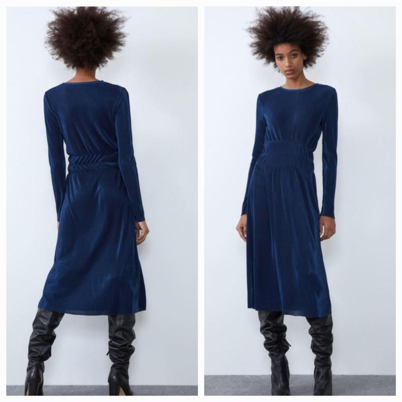 Темно синее платье миди, гофрированное, в рубчик zara (размер 36-40)