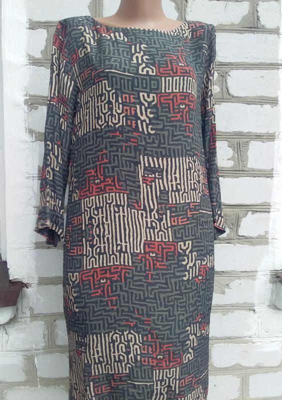 Миди платье авангард принт эко шелк вискоза кэжуал классика оверсайз ретро