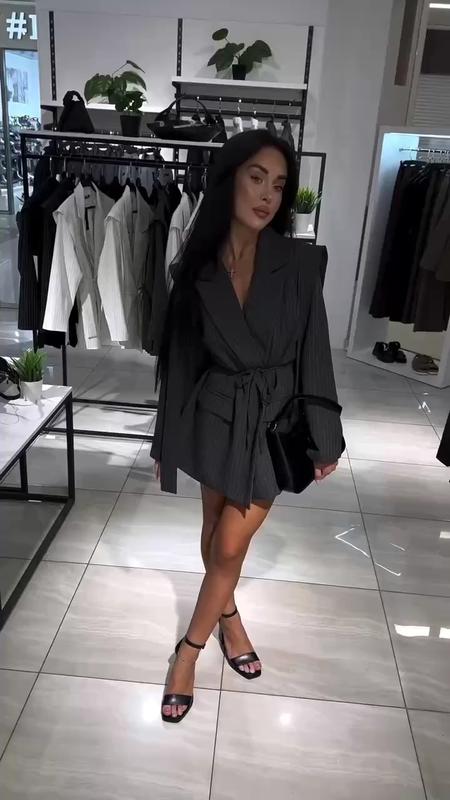 Платье пиджак 322 Тканина - костюмка полоска Размеры - 42-46 универсальный Цвета - графит Когда хочется чего-то особенного Идеально будет под кроссовки или туфли Крой очень красиво моделирует фигуру