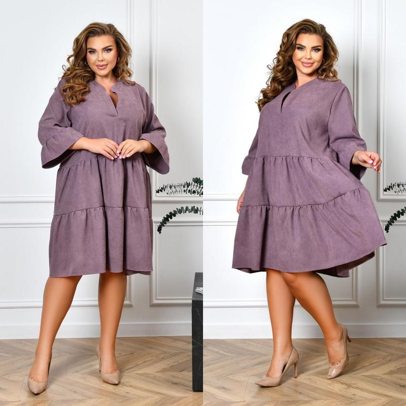 Сукня Код 3706 Ціна 895 грн. Тканина: мікровельвет (не мнеться). Кольори: фрез, чорний, марсала. Розміри: 48-50, 52-54, 56-58, 60-62, 64-66. Довжина сукні: 100, 101, 102, 103, 104 см. Довжина рукава: 46, 47, 47, 48, 48 см. Обхват рукава: 42, 44, 46, 48, 50 см. Заміри готового виробу: 48-50 ОГ 117 ОТ 125 ОБ 190 52-54 ОГ 126 ОТ 134 ОБ 200 56-58 ОГ 134 ОТ 142 ОБ 208 60-62 ОГ 142 ОТ 150 ОБ 216 64-66 ОГ 150 ОТ 158 ОБ 224 На моделі розмір 52-54❗️❗️❗️ Зріст 170 см. ОГ 108 ОТ 85 ОС 115 см✅ Неймовірно стильне плаття вільного силуету із мікровельвету (тканина не тягнеться). Плаття складається із ліфу та спідниці у два яруси. Виріз горловини V-подібний, що візуально подовжує шию, оформлений невеликою стійкою. Рукав декорований воланом, його довжина — 3/4. Застібок та кишень у плаття немає