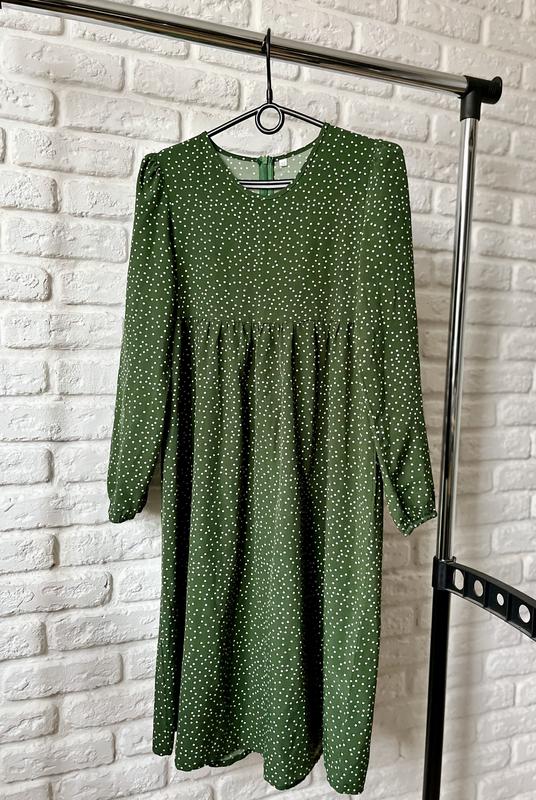 Женское платье зеленого цвета в белый горошек Размер xs-s Длина 98 см Легкая приятная ткань