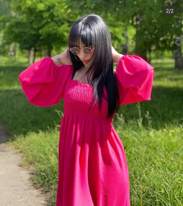 На фото девушка размера с-м, платье очень тянется за счет резинки, может быть и на л Цвет яркий Стан, идеальный