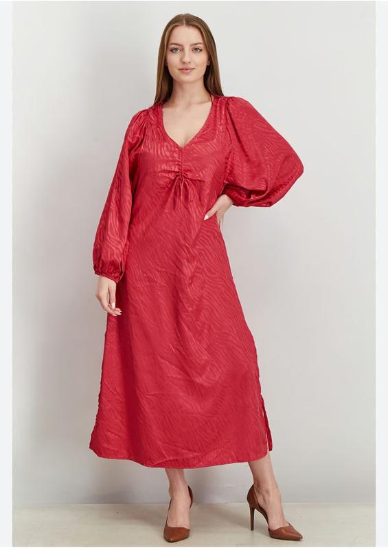 Платье от бренда lefties – это испанский бренд одежды, который принадлежит к группе компаний Inditex (в эту группу также входят Zara, Pull & Bear, Stradivarius и другие). Платье свободного силуэта, по бокам разрезы, V образным вырезом с драпировкой, пышные рукава, ткань 57% вискоза, 43% полиэстер, приятное на ощупь, средней плотности. Принт - зебра. Подойдет также беременным. Стан идеален без нюансов. Размер М. Замеры: длина по спинке 124 см полуобхват груди 47 см полу охват талии 49 см полуобхват бедер 51 см рукав от плеча 69 см - манжет на резинке, поэтому удлинением не будет.