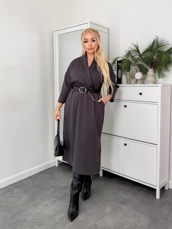 Сукня Мод RC-105 Разміри: 42-46, 48-52, 54-58 Цвет: серый Ткань : итальянский трикотаж Пояс в комплекте Цена : 930 грн Базовое платье, что будет уместно как и для офиса, деловой встречи, так и на праздничном застеле или прогулке. Отрезная талия на резиночке позволит носить ее на любом типе фигуры. Можно носить как с поясом, так и без него