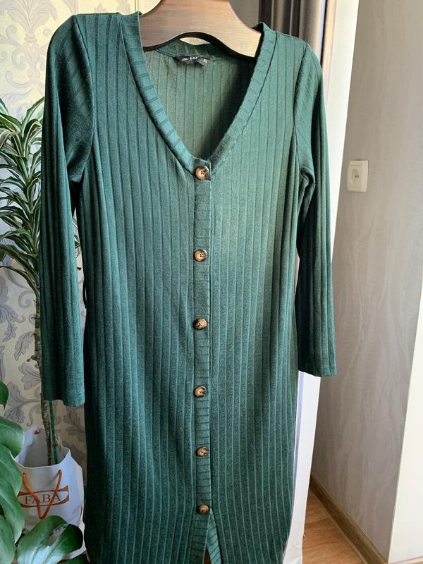 Платье прямого кроя, длиной миди. Выполнена из ткани в рубчик, в составе вискоза и полиэстер. Спереди пришиты пуговицы, имитирующие застежку. Красивый изумрудный цвет. Платье в очень красивом состоянии, без дефектов. Замеры: ширина в груди 96, в талии 92, в бедрах 100, рукав 58, длина 110.