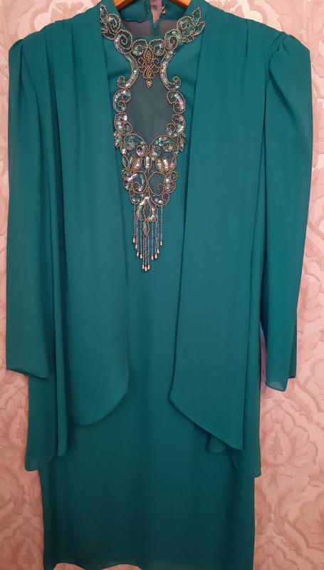 Изысканное винтажное платье с ручной вышивкой бирюзового цвета, потрясающе садится по фигуре. Длина от горловины 111 см,ПОГ 54, длина рукава 62 см.
