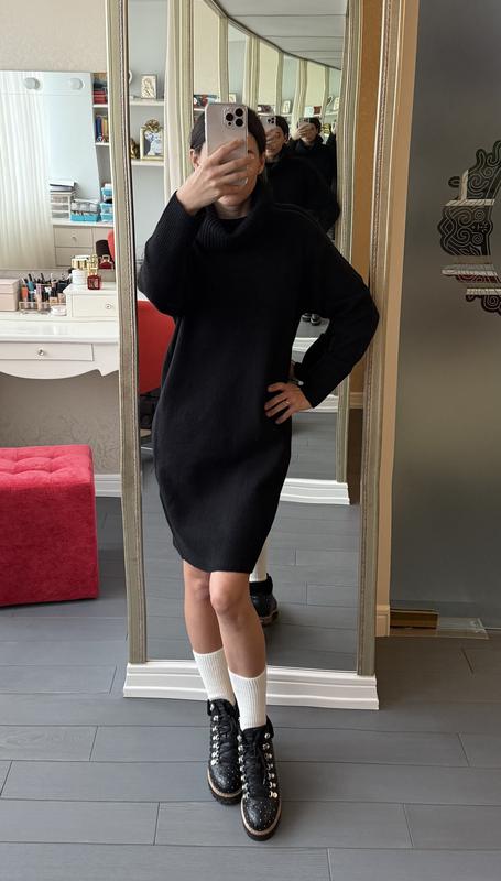 Платье Uniqlo, размер S, свободный крой, подойдет на M. Классическая модель, не выйдет из моды! Теплая и приятная к телу ткань. В составе шерсть. Длину можно регулировать с помощью ремешка (не входит в комплект) и создавать классные образы. Замеры: Длина 95 Ширина 49 Рукав 59 Цена со скидкой, ниже рыночной!