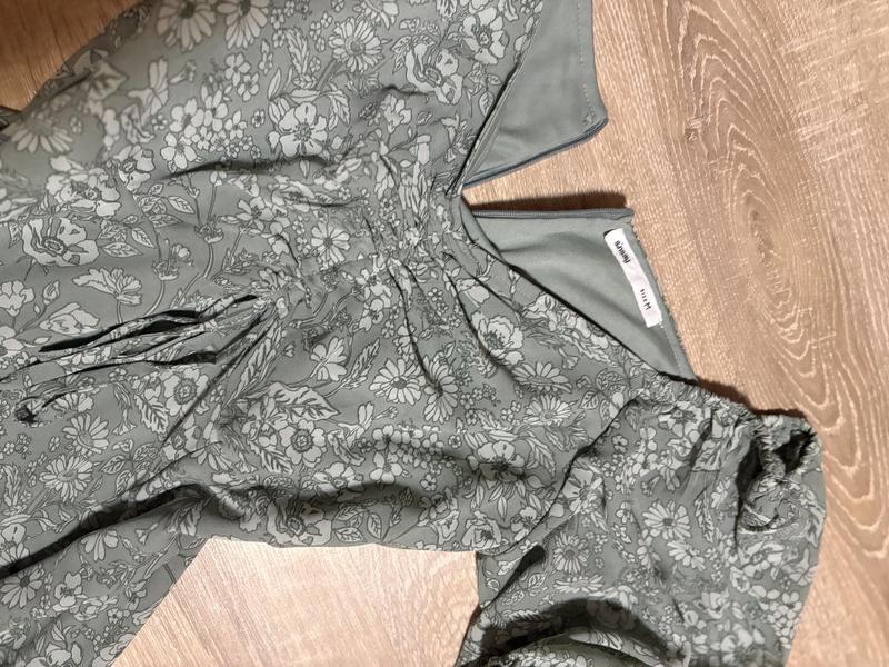 Платье миди длины в цветочный принт. Регулируется на груди, застежка на спине. Есть подкладка, поэтому не просвечивается