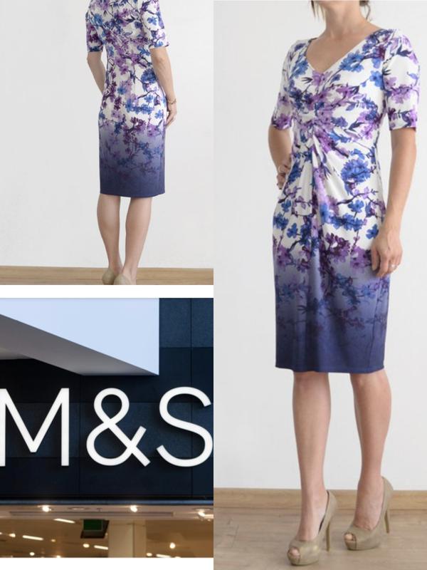 Элегантное платье с цветочным принтом и драпировкой m&s этикетка