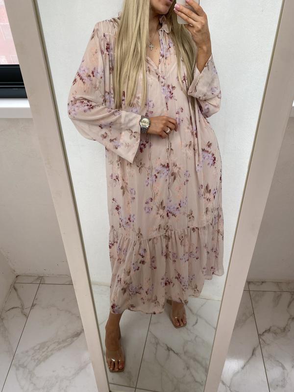 Роскошное цветочное платье миди макси из шифона h&m принт цветы кафтан