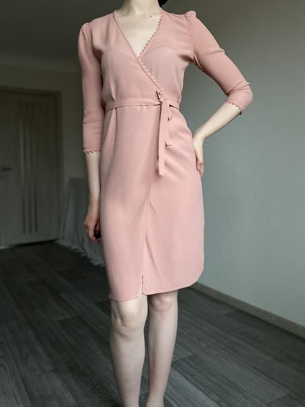 В идеальном состоянии, но есть маленькая пятнышка, на фото указала. Состав: 100% вискоза, по наборе XS. Цвет пристальной розы Замеры: длина 100 см, рукав 46 см На фото с сайта такая же модель, только в черном цвете.