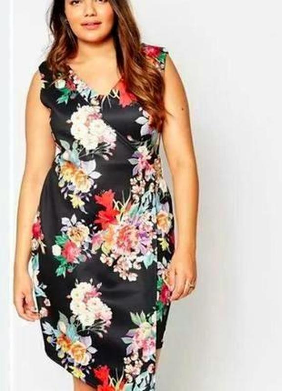 плотное стрейчевое платье как на запах в яркий цветочный принт,слева находится застежка металлическая в виде бабочки, асимметричный низ,ткань плотная,хорошо тянется,стан новой вещи,размер указаннее u920,наш 54-56 длина по спине 98см, длина максимальная 119см, пог 53до68см,пот 48до59см, поб 59до76см 95%ПЕ5%еластан сделано в UK #699#