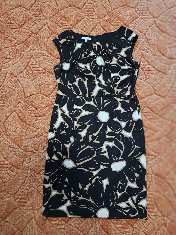 Платье-футляр. Всесезонное. Красиво с пиджаком. Отлично сидит по фигуре, ткань держит форму, приятная к телу, не просвечивается. Красиво подчеркивает грудь, талию. Верхняя часть платья имеет подкладку. Замеры изделия в нерастянутом виде, см: подмышки (примерно равна ПОГ) 52 см, Длина- 101,5 см; Талия 45 см, Бедра полуобхват 55 см.
