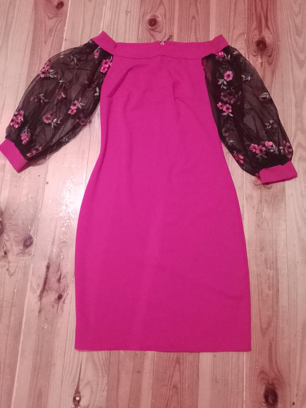 приталенное платье с вышивкой на рукавах