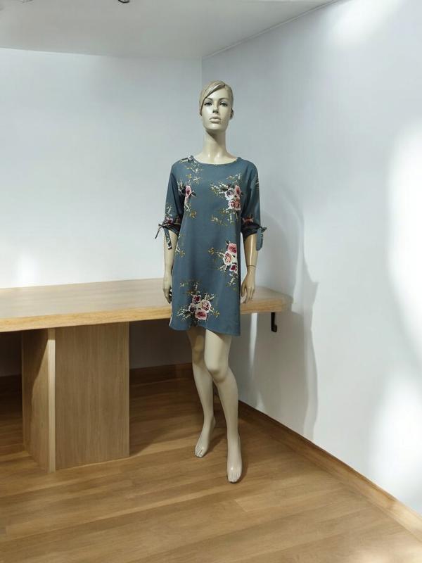 Лёгкое, симпатичное платье в отличном состоянии с руковом трансформером. Длина изделия по спинке от плеча 89 см, полуобхват груди 56 см, полуобхват талии 56 см, длина рукава 49 см. Ткань тянется. Модель 5679