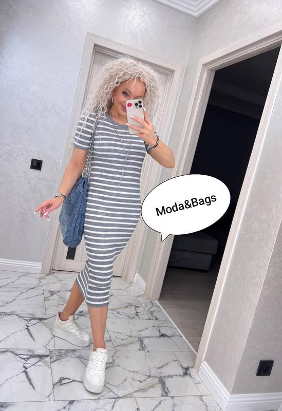 Женское молодёжное летнее вязаное платье в полоску с коротким рукавом оверсайз 42/48 Женское молодёжное летнее вязаное платье в полоску с коротким рукавом для самых модных и стильных девушек. Вязка в рубчик хорошо тянется, садится по фигуре и не просвечивается. Платье хорошо садится по фигуре и подчеркивает всю вашу женственность и стильность Размер оверсайз 42/48 Цвета в наличии - кэмел (бежевый), серый, черный, мокко (каппучио), бутылка (зелёный) Материал - машинная вязка в рубчик акрил Длина изделия - 120 см Обхват груди от 70 до 100 Обхват бедет - до 102 см