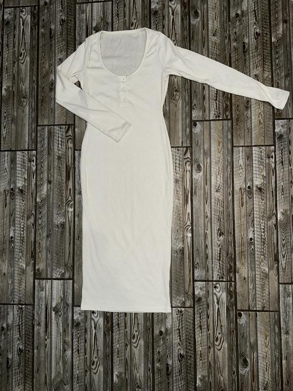 Платье в рубчик в светло-бежевом цвете. С имитацией пуговиц на груди. Седает по фигуре. Нова. Покупала, должна была носить. Бирки срезала, но мне стала мала.
