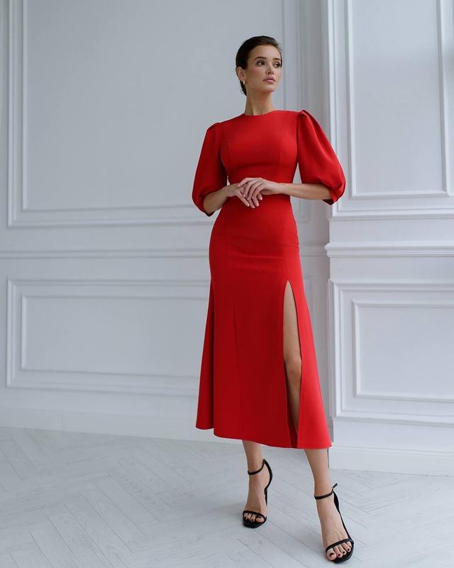 Платье, Платье миди🥰 Арт 416 Расцветка: черный, молочный, красный, электрик Размеры: хs, s, m, l Ткань - креп диагональ премиум класса Длина по спинке - 125см Длина юбки - 88см Длина рукава - 40см