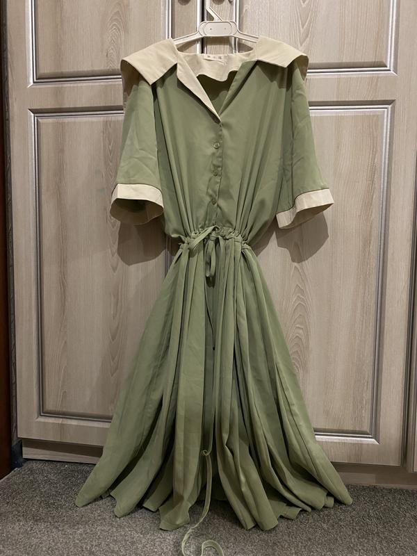 На завʼязці на талії 💚 Позбуваюсь своїх старих речей Область талії (максимальна):55 см Довжина: 96 см Довжина рукава: 23 см Область грудей: 53 см