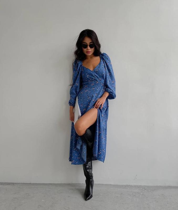 Милое платье с цветочным принтом Платье с цветочным принтом, и очень привлекательное декольте 🤤 Оно идеально впишется в любое событие 🩵 На спине потайная молния, рукава сверху и снизу на резинке. 📌 Код: 246-221 📌 Размеры: 42-44, 46-48, 50-52 📌 Тканина: софт 💰 Цена: 680 грн
