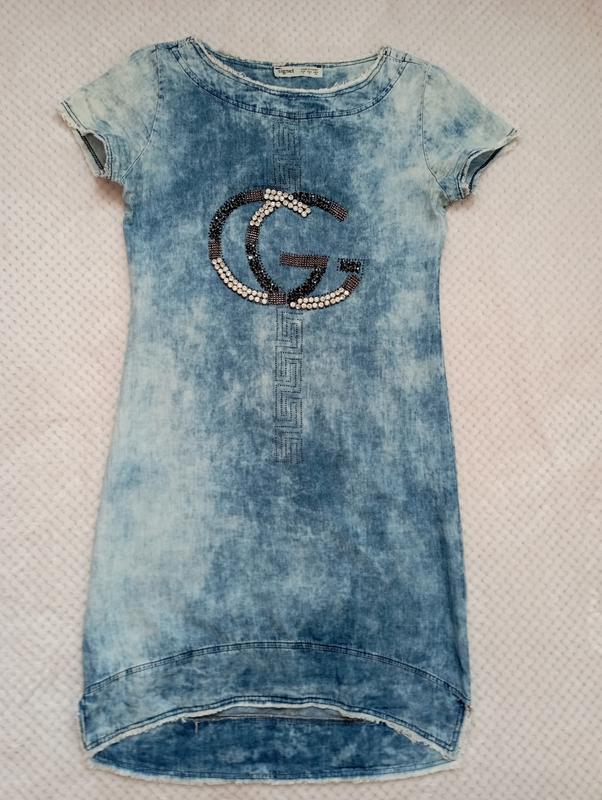 платье с градацией синего цвета с декором, длина 100 см, ог 47 см, об 52 см, вот 43 см, не тянется...