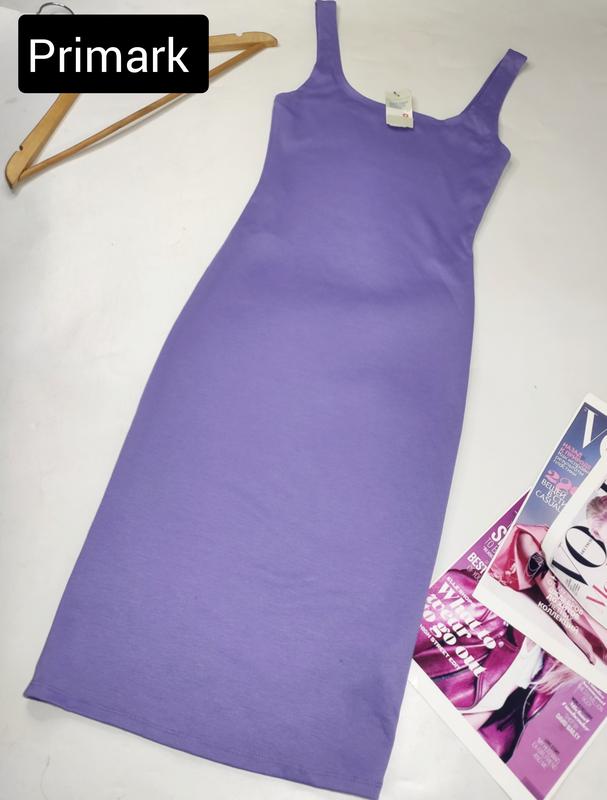 Платье женское футляр миди сиреневого цвета на широких бретелях от бренда primark s
