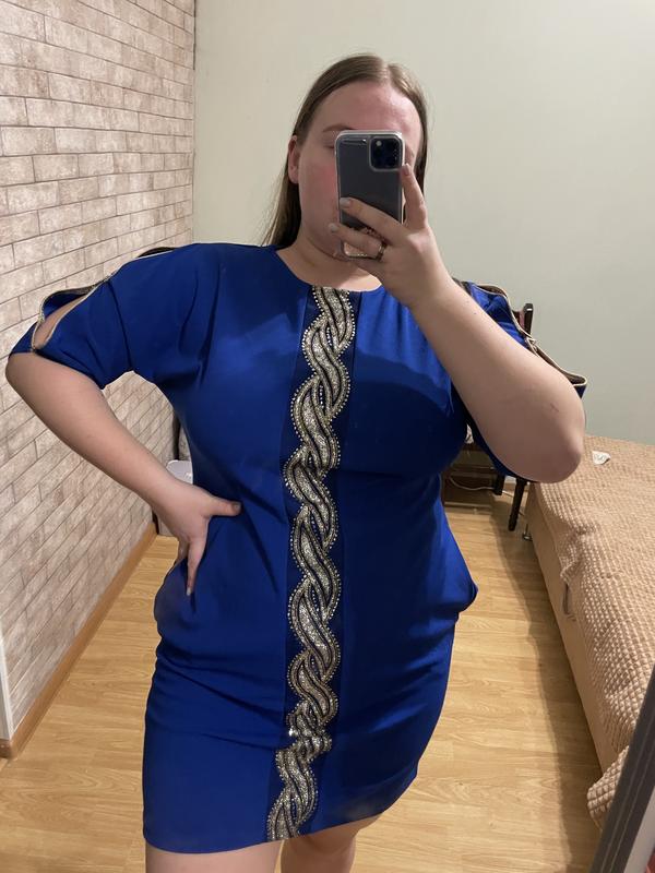 Чрезвычайное синее вечернее платье с продольной полоской, которое красиво удлиняет силуэт. В платье есть карманы, поэтому будет удобно положить какие-то безделушки. Красиво облегает фигуру, скрывает недостатки. Размер 2-3хл. Также смотрите другую одежду на моей странице)