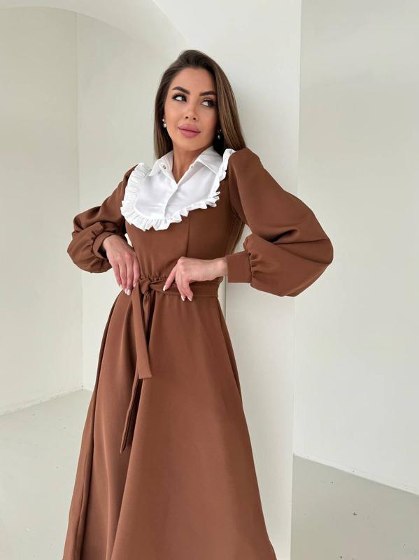 Элегантное платье миди из костюмной ткани - это идеальный выбор для стильных и уверенных в себе женщин. Изготовленное из высококачественной костюмной ткани, это платье подчеркивает силуэт и обеспечивает комфорт в течение всего дня. Классический крой и миди длина делают ее универсальной для любого события – от деловых встреч до вечерних мероприятий. Изысканные детали и утонченный дизайн создают неповторимый образ, который будет привлекать внимание и восхищенные взгляды. Застегивается на кнопки.На талии резинка, одевается под пояс.Сукня, чарующая и придает уверенность.Это то, что должно быть в твоем гардеробе. мод. 161