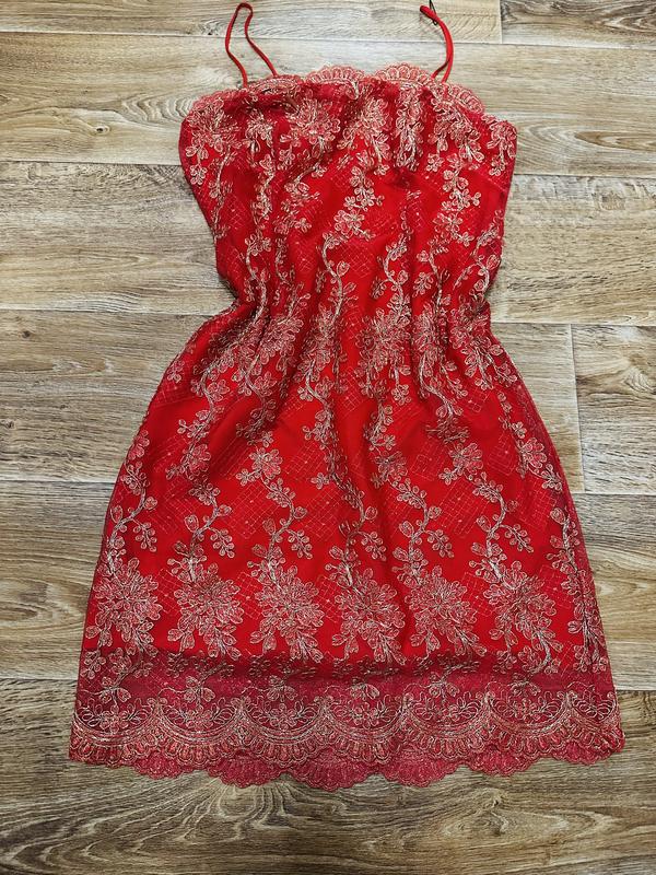 Красное платье с золотыми нитями, вышивка, очень крутое, длина миди) 1 метр, на фото рост 180, мне чуточку больше ее талии. Новое, с биркой (цена На ней 1600), можно на подарок. Цвет яркий красный, ярче, чем на фото