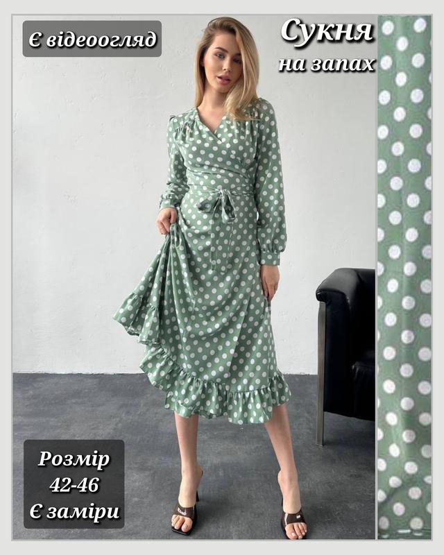 Платье платье-миди на запах в горошек, женское ретро винтажное чайное, модное элегантное,...