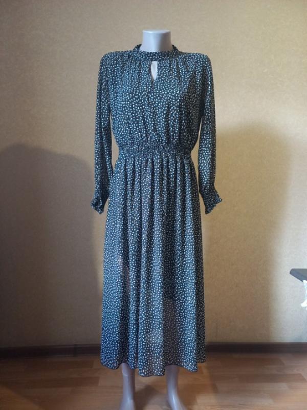 платье шифоновое на подкладке, на 46-48 размер, пог.52см, пот.35-45см.( резинка), длина 115см., рукав от шва 54см.