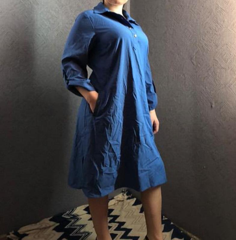 Сукня оверсайс на довгий рукав з комірцем, легка й зручна, має кармани по боках, рукави можна зробити коротшими Д. 98 Пог. 51-55