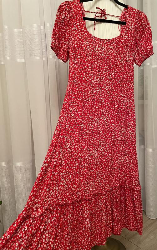 Гарнюща сукня з віскози, стан ідеальний , тканина приємна до тіла , позаду резинка , гарно сяде на будь-який розмір грудей
