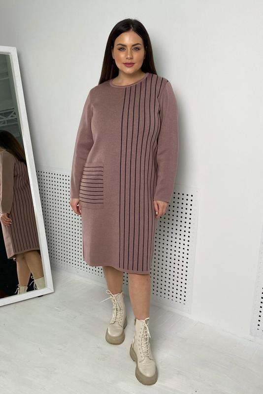 В'язане елегантне плаття приталеного фасону з геометричним малюнком, що вдало видовжує силует. Рукав довгий, горловина округла. Практична модель на кожен день. Матеріал: в'язка (50% шерсть, 50% акрил).