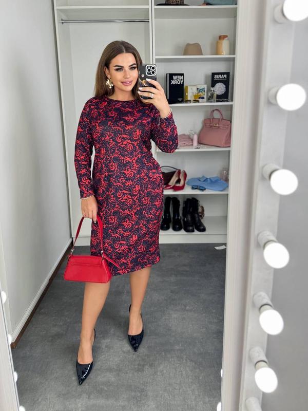 Сукня Мод: 0327 Сукня Тканина: трикотаж Размер: 48-50,52-54,56-58. Цвет: красный, зеленый. Растяжимость ткани +2-3см. длина рукава-60см., Длина платья-108/109/110см. 48-50 ОГ -102см., ОТ-90 см., ОС - 108 52-54 ОГ-110см., ОТ-980 см., ОС -116 56-58 ОГ -118см., ОТ-106 см., ОС -124