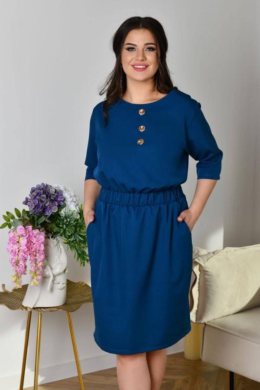Мод: 0228 Сукня. Тканина: костюмка. Цвет:, черный, индиго. Размер: 48-50; 56-58. морская волка: 48-50, 52-54, 56-58 Длина изделия: 110см. Длина рукава: 36см. ОГ. 108/118/126 см ОТ. 80-100/88-108/96-116 см ОС. 114/128/136 см