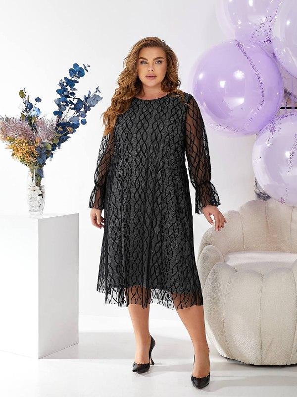 Розмір 52,54,56,58! Тканина: сукні вільного крою люрекс + сітка флок Заміри виробу: 52:ОГ 112 довжина рукава 60 довжина виробу 114 54:ОГ 116 довжина рукава 60 довжина виробу 114 56:ОГ 120 довжина рукава 60 довжина виробу 114 58:ОГ 124 довжина рукава 60 довжина виробу 114 пбр