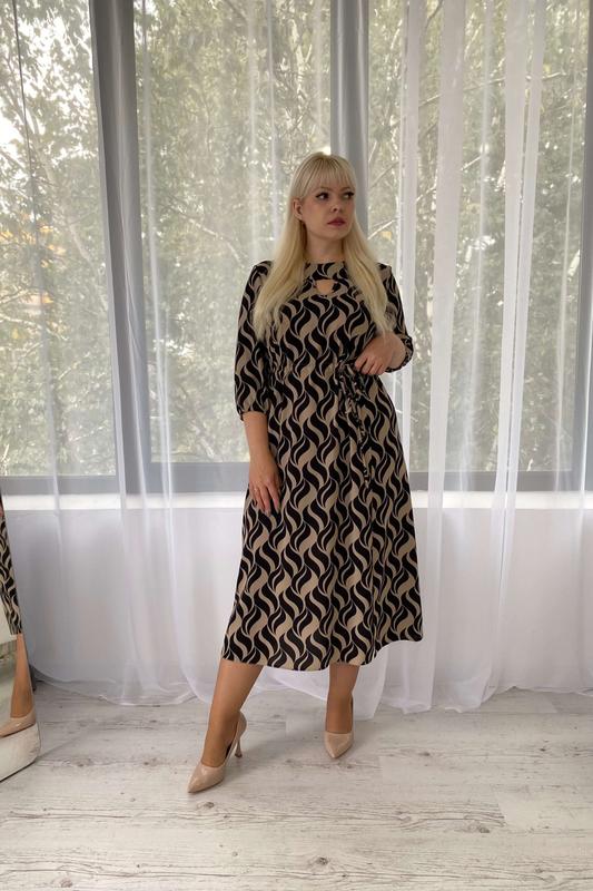 Перед покупкой уточните пожалуйста наличие, спасибо 😊 Платье миди из весенней новой коллекции ▫️ Размеры: 52 54 56 58 ▫️ Лаконичная модель с фасоном для любимого типа фигуры. Будет уместна и к свеча и на каждый день. Приятная и практичная ткань креп, рукав 3/4 на манжете резинка. По талии кулиска. Рост модели 170 см ОГ 105, ОТ 85, ОБ 117 см. На ней продемонстрирован размер 52.