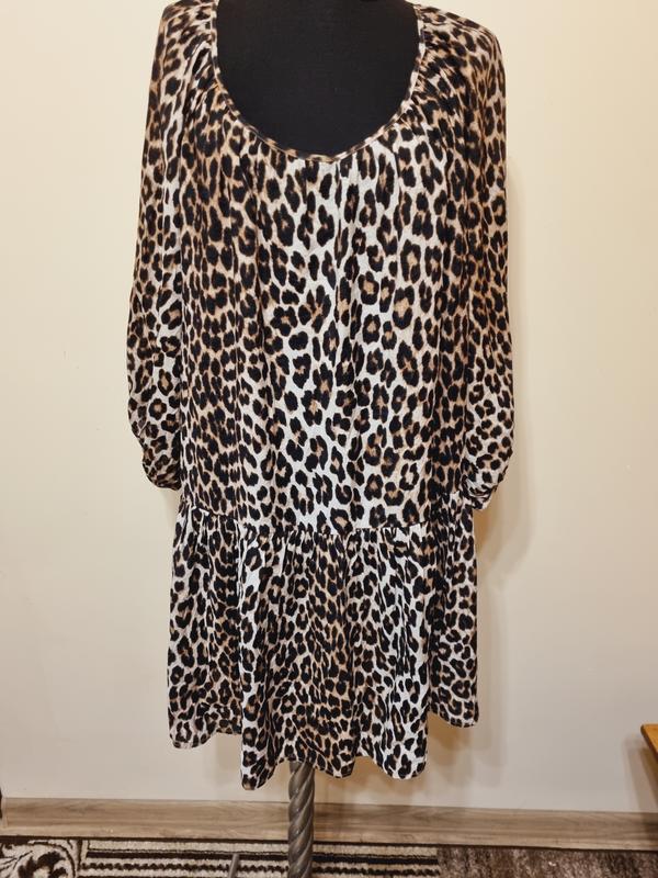 платье свободного кроя, трубка трех четвертных.по низу широкая оборка.