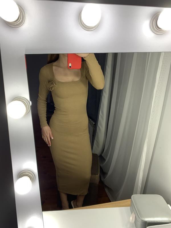 Трикотажное платье миди в рубчик, песочного цвета, размер S