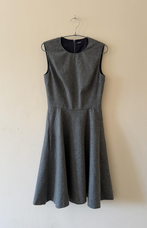 Шерстяное шикарное платье А-силуэта с расклешенным кроем бренда класса люкс Jil Sander Оригинал. Верх без рукавов с круглым вырезом. Размер 38, XS-S. Идеальное состояние, без нюансов. По бокам есть карманы. Состав:: 60% шерсть, 38% полиэстер, 2% спандекс. Замеры: длина 101 см, пог 43 см, пот 35,5 см, поб 114 см. Цвет серый.