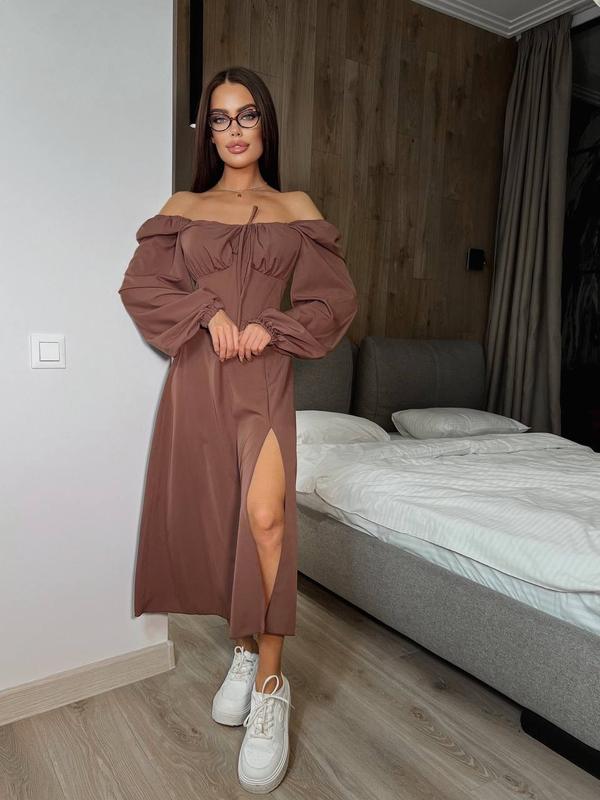 ❗️ 5 цветов ❗️ платье миди софт с разрезом на ноге с завязкой на груди и корсетной шнуровк...