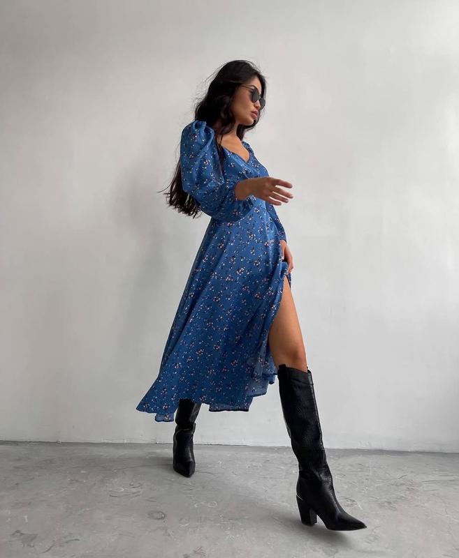 Платье с цветочным принтом, и очень привлекательное декольте 🤤 Оно идеально впишется в любое событие 🩵 На спине потайная молния, рукава сверху и снизу на резинке. 📌 Код: 246 📌 Размеры: 42-44, 46-48, 50-52 📌 Тканина: софт 💰 Цена: 670 грн.Агат