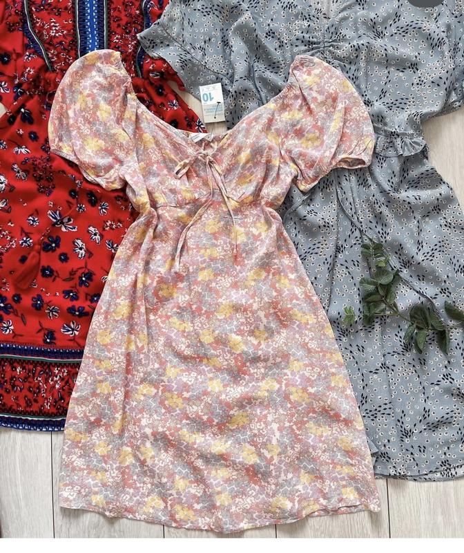 Очень красивое платье в пастельный цветочный принт Легкая. Идеально на тело. Можно носить с открытыми плечами. Состав: 100% вискоза Размер UK 10 Замеры: длина 86 см, ПОГ 43 см, ПОТ 37-42, бедра 57