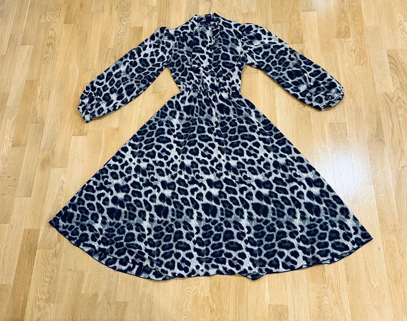 Сукня з принтом, спідниця напів кльош, елегантний бант на комірі