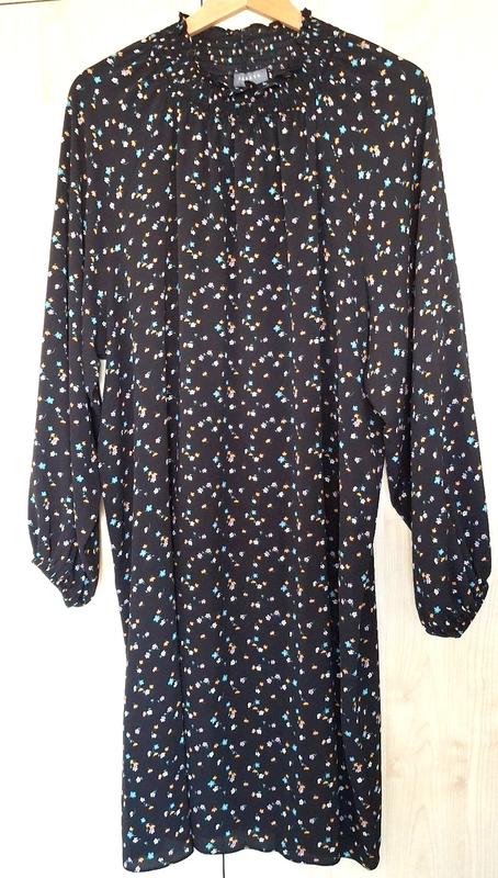 Интересное платье прямого (трошки расширенного к низу) кроя, широкий рукав реглен, горловинка и манжеты собраны на резинку. Нарный цветочный принт. Ткань - как плотный крепдешин., не просвечивается. Можно на каждый день на работу, можно на вечер - она универсальна. Размер пишет английский 22, но может быть на 42-44 европейский, оно в качестве балахончика. Такое платье должно быть в гардеробе - на все случаи жизни :) Замеры: длина по спинке 103 см, рукав от горловины - 73 см, пог 70, пот 73 см, поб 77 см. Ширина рукава - 30 см.