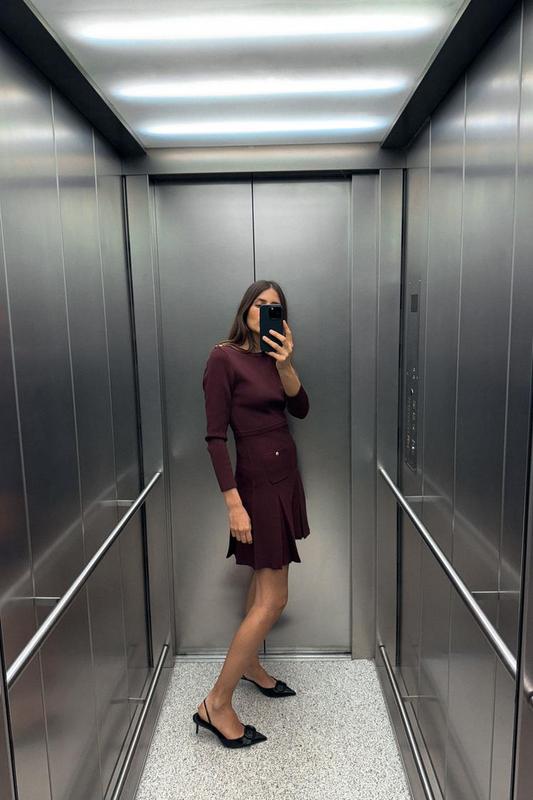 Платье платье zara из плотного трикотажа цвет бургунд. Размер М, полномерная. Ткань красиво тянется. Длина 90см, длина рукава 55см, полуобхват груди 41см, полуобхват талии 38см, полуобхват бедер 48см + красиво тянется.